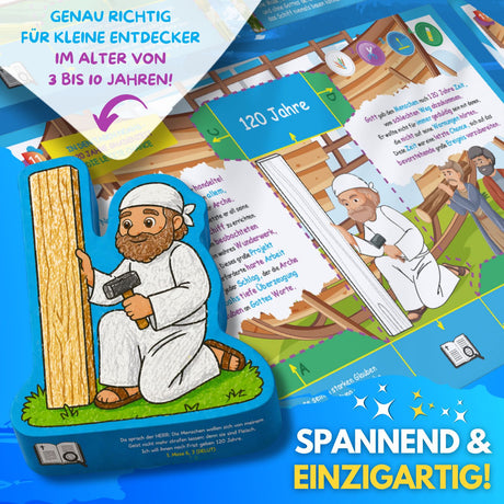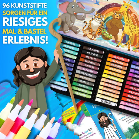 Entdecken Sie mit Ihren Kindern die spannende Geschichte der Arche Noah – mit unserer vielseitigen Abenteuerbox. Dieses kreative Set lädt Kinder dazu ein, die Geschichte durch Malen und Basteln aktiv zu erleben, während sie spielerisch biblisches Wissen erlernen.